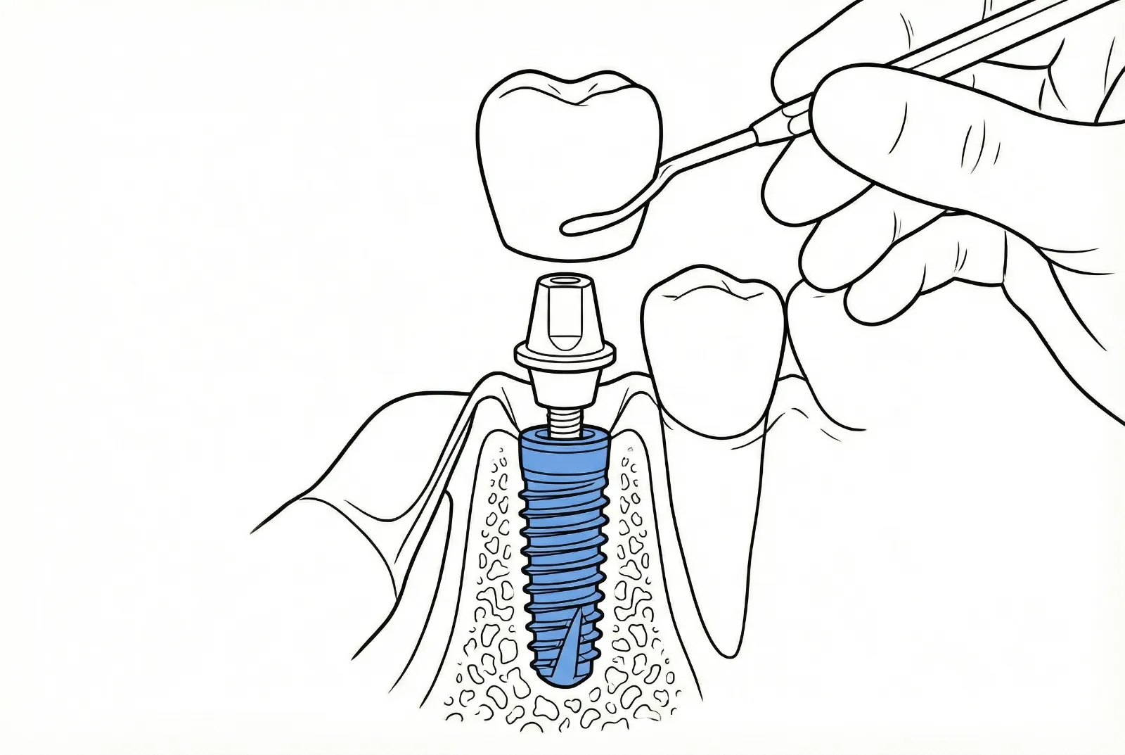 The implant is placed into the jawbone and allowed to heal before attaching the final tooth.